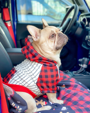 Over sized double lined hood especially made for the French bulldog breed.