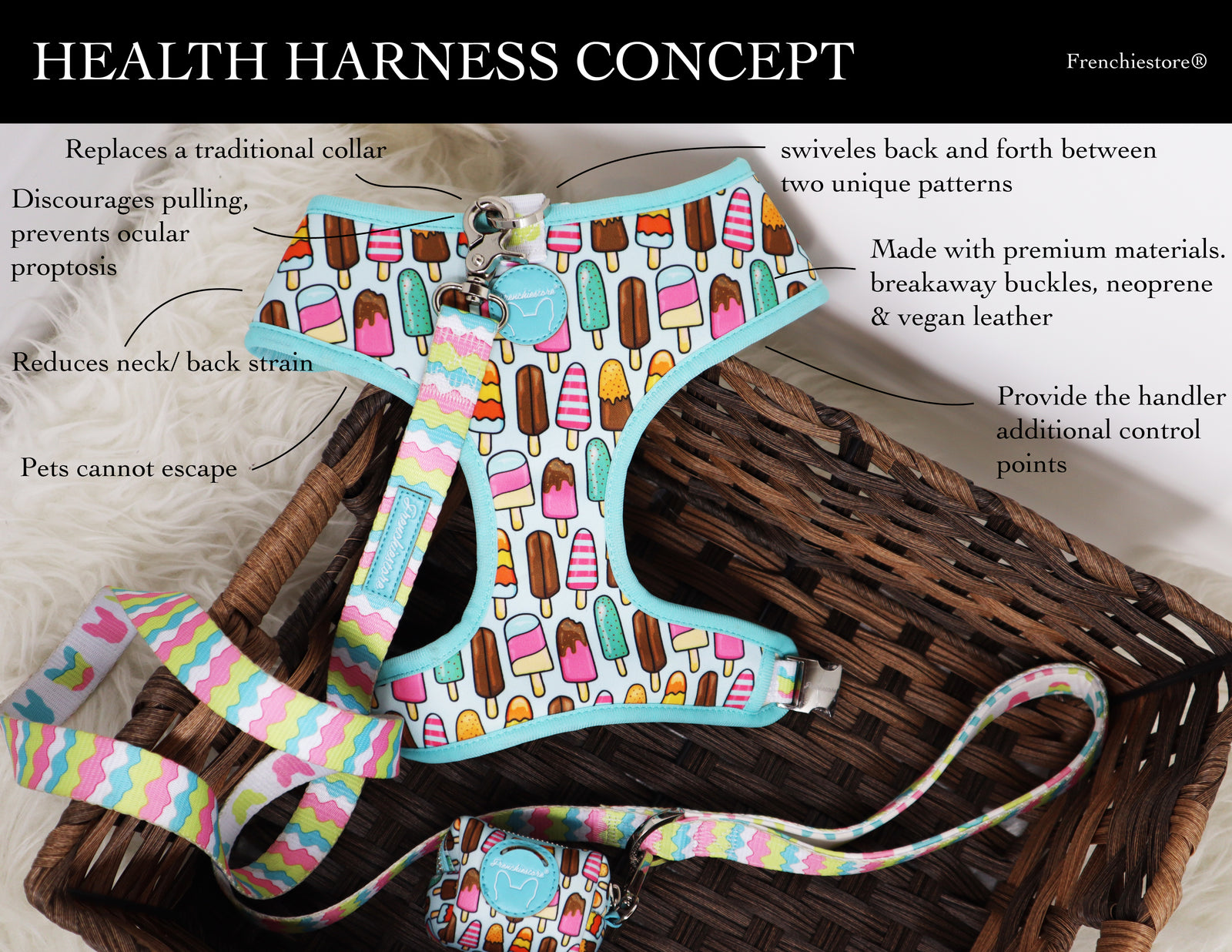 For pullers or multiple pets we recommend pairing your Health Harness with Frenchiestore Health Leash for the best results.