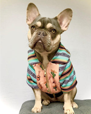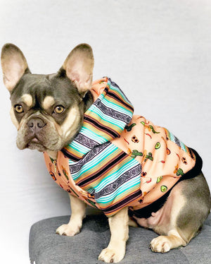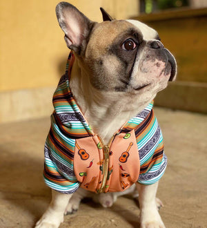 A harness slate - Each of our dog hoodies pair perfectly with our Health Harnesses they were made to correspond together. You can easily attach the leash to the back or the front D ring while your dog is wearing our Frenchie dog organic hoodie.