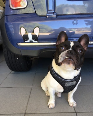 The original makers of the peeking Frenchie car decal since 2015 - One of a kind peeking French Bulldog design not available anywhere else. Frenchiestore intellectual property.