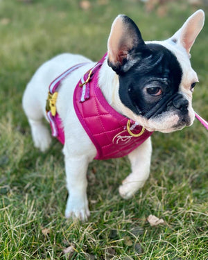 My Frenchie looks like a little fashion icon in this harness set! The BEET Vegan Varsity Bundle is perfect for our daily walks. The harness fits snugly and securely without being too tight