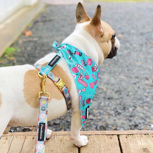 Our pup has a big head on a lean body so being able to adjust the neck and chest is really helpful. The reason why this harness is our absolute favorite is because she HATES having things pulled over her head. It’s so easy to put on. The graphics are adorable and we love the fancy buckles too! We’ve tried a number of others but we won’t be shopping anywhere else.