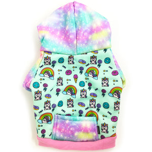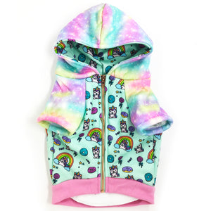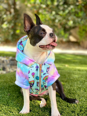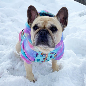 A harness slate - Each of our dog hoodies pair perfectly with our Health Harnesses they were made to correspond together. You can easily attach the leash to the back or the front D ring while your dog is wearing our Frenchie dog organic hoodie.
